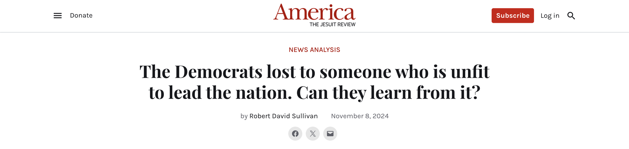 In August 2024, America Magazine — the flagship Jesuit publication in the United States — published my opinion piece criticizing Republican vice presidential nominee JD Vance for accusing Tim Walz of "stolen valor." The piece argued that Vance's rhetoric amplified survivor's guilt in a community devastated by suicide. It named both candidates in the headline, ran as part of America's Democratic National Convention coverage, and concluded that the Republican nominee should publicly retract his comments. I was paid $250 for it.