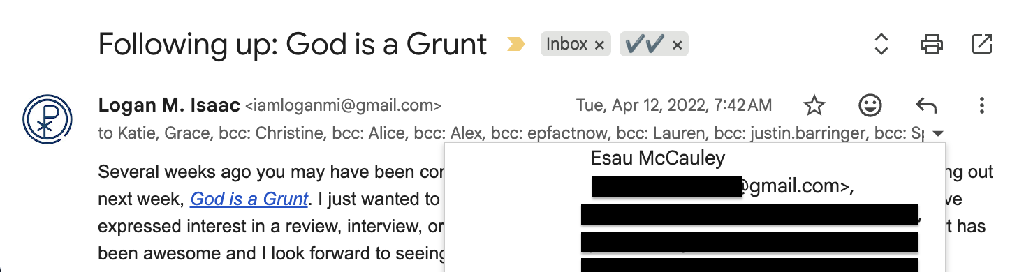 📧 “Following up: God is a Grunt” (ignored)