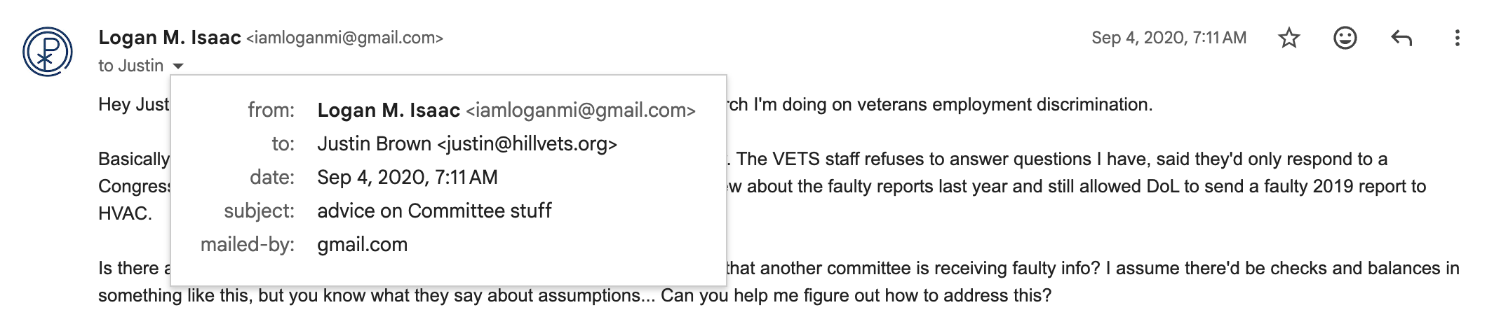 Hey Justin [Brown], I'm hoping you can help me figure something out related to research I'm doing on veterans employment discrimination.
